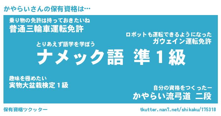 | ファンタジー風あだ名 | 『カヤフェル』『エターナルカヤライー』 |