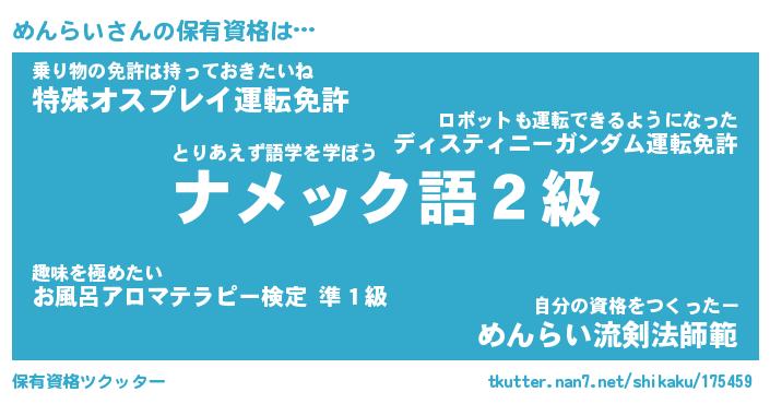 | 意味不明あだ名 | 『ペロリンめんらい』『永久保存めんらい』 |