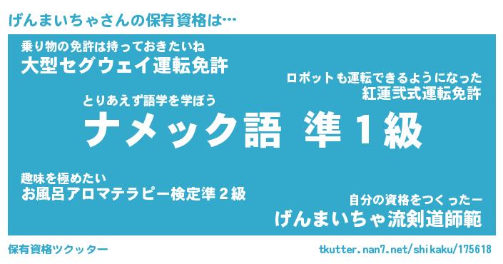 | 男性向けラノベタイトル風あだ名 | 『げんまいちゃの憂鬱』 |