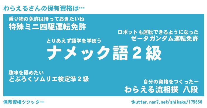 | 意味不明あだ名 | 『ペロリンわらえる』『永久保存わらえる』 |