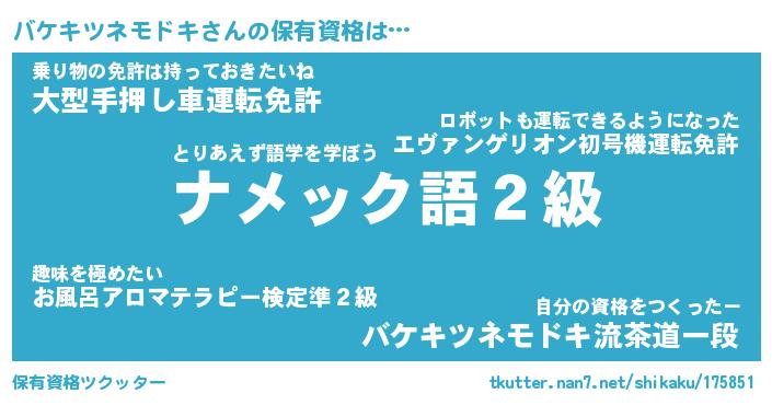 | ヘコむあだ名 | 『バケふぇ~』『なまこ酢』『バケを』 |
