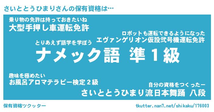 | 伝説のあだ名 | 『不死鳥の傭兵さいととうひまり』 |