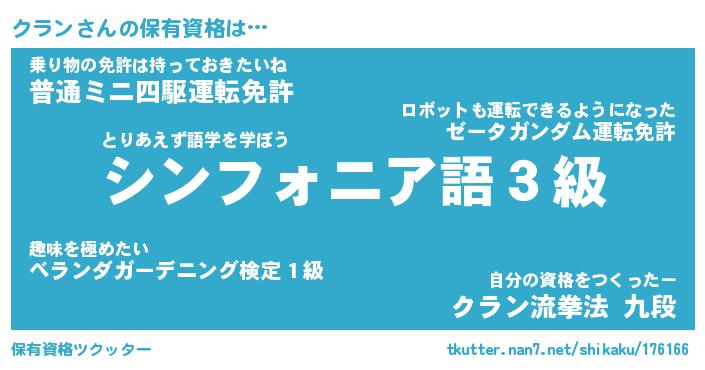 | 男性向けラノベタイトル風あだ名 | 『クランの憂鬱』 |