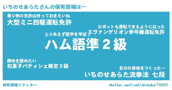 | 自動車の名前っぽいあだ名 | 『イチティマ』『イスラー』『インR』 |