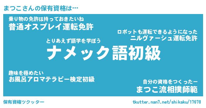 | 意味不明あだ名 | 『ペロリンまつこ』『まつこフォーエバー』 |