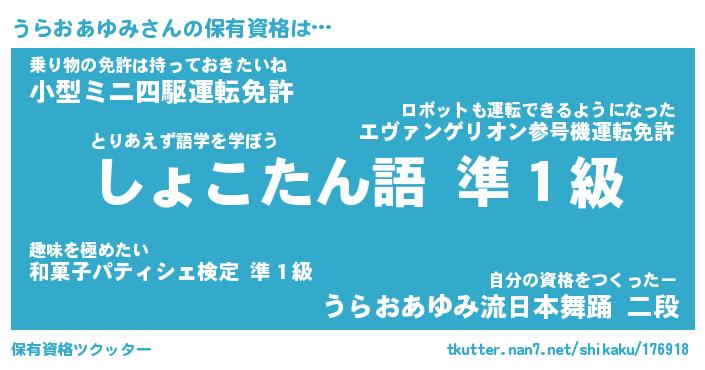 | ヒーロー風カッコイイあだ名 | 『スーパーウラオアユミ』『天弓騎士ウラ』 |