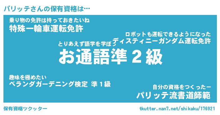 | 男性向けラノベタイトル風あだ名 | 『パリッテの憂鬱』 |