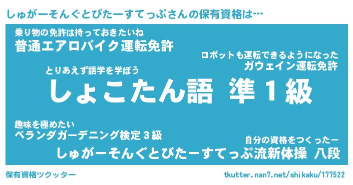 | 自動車の名前っぽいあだ名 | 『シュティマ』『シクア』『シント』 |