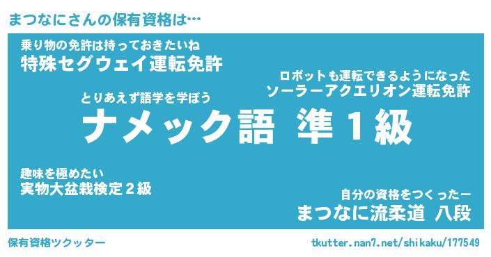 | 男性向けラノベタイトル風あだ名 | 『まつなにの憂鬱』 |