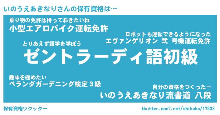 | 男性向けラノベタイトル風あだ名 | 『いのうえあきなりの憂鬱』 |