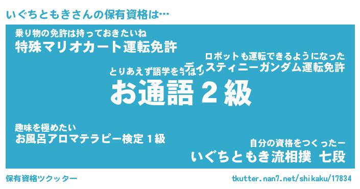 | 女子向けラノベタイトル風あだ名 | 『(仮)いぐちともきのやんごとなき事情』 |