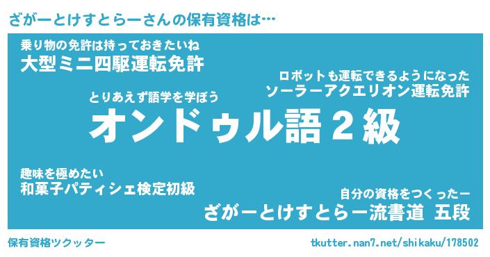 | 自動車の名前っぽいあだ名 | 『ザガティマ』『ザクア』『デミザ』 |