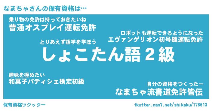 | ヘコむあだ名 | 『なまにー』『つくし』『なま太郎』 |