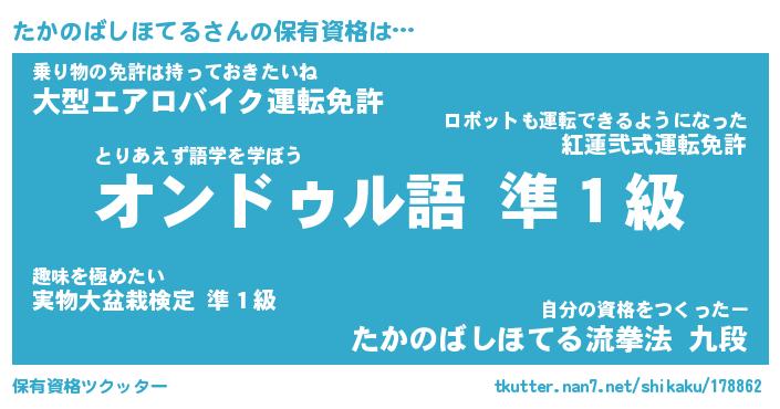 | 肩書あだ名 | 『たかのばしほてる店長』 |