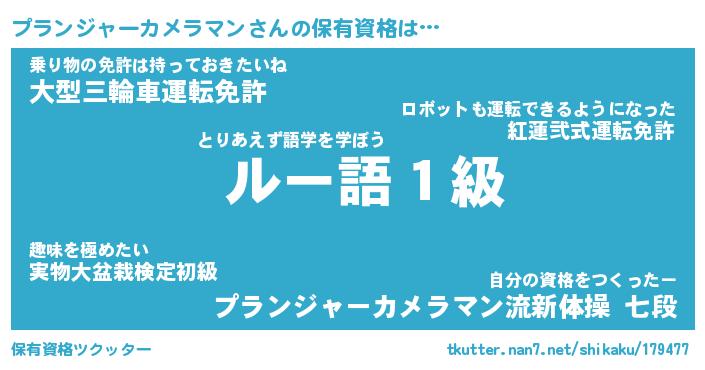 | ヒーロー風カッコイイあだ名 | 『スーパープランジャーカメラマン』 |
