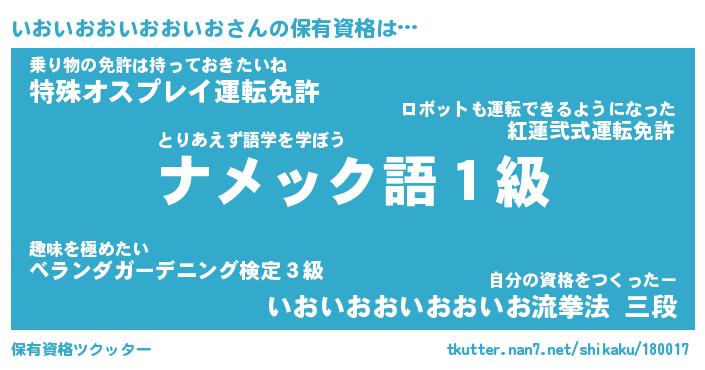 | ピコ太郎風あだ名 | 『イコ次郎』『ピイ二郎』『イオ太郎』 |