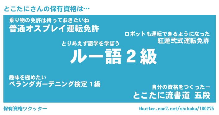 | ファンタジー風あだ名 | 『トコフェル』『エターナルトコタニー』 |