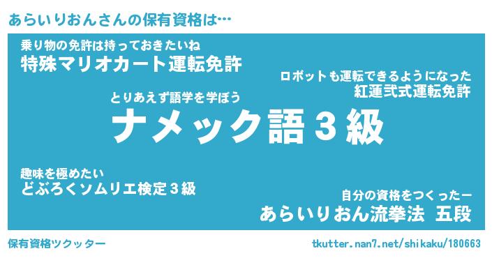 | ヒーロー風カッコイイあだ名 | 『スーパーアライリオン』『炎刃騎士アラ』 |