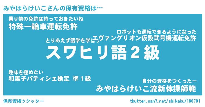 | 女子向けラノベタイトル風あだ名 | 『(仮)みやはらけいこのやんごとなき事情』 |