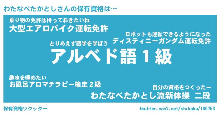 | 胡散臭い通販商品みたいなあだ名 | 『億万長者になれるブレスレット…その名も「わたなべたかとし」』 |