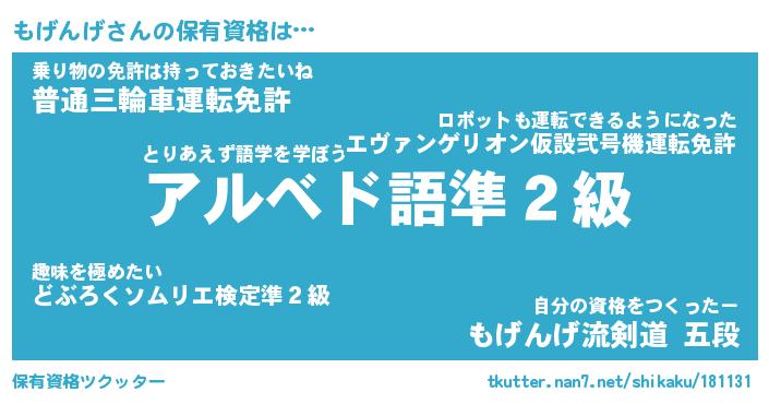| 意味不明あだ名 | 『ペロリンもげんげ』『永久保存もげんげ』 |