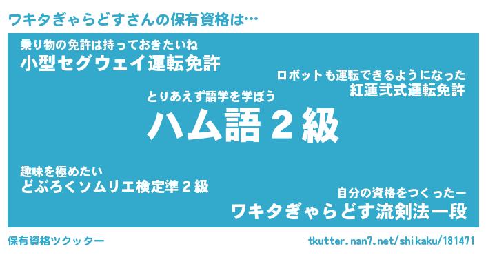 | 意味不明あだ名 | 『ペロリンワキタぎゃらどす』 |