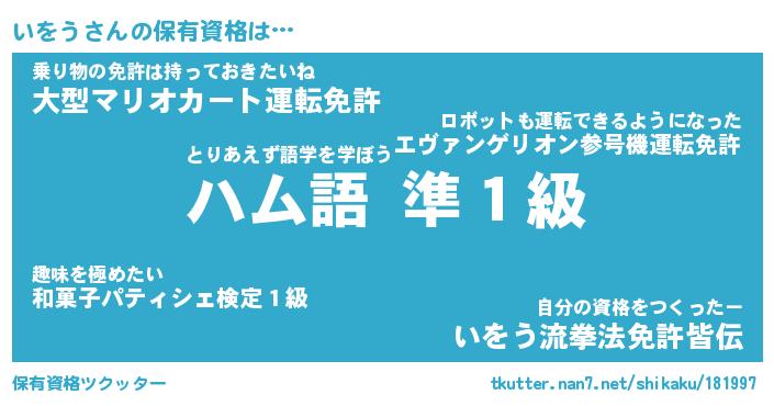 | 自動車の名前っぽいあだ名 | 『イヲティマ』『イスラー』『インR』 |