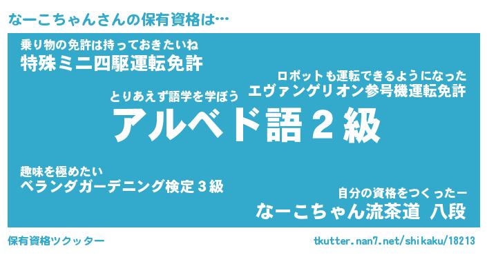 | ヒーロー風カッコイイあだ名 | 『スーパーナーコチャン』『天弓騎士ナー』 |