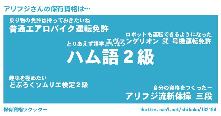 | ツイッター | アリフジさんのツイッターID『katatsumuri_star』 |