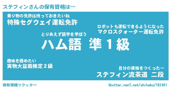 | 肩書あだ名 | 『ステフィン店長』『ステフィン総理大臣』 |