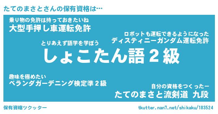 | ヒーロー風カッコイイあだ名 | 『スーパータテノマサト』『天弓騎士タテ』 |