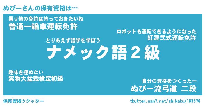 | ヘコむあだ名 | 『ぬびにー』『つくし』『ぬびぷりん』 |