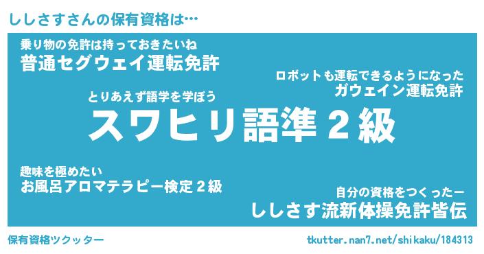 | 欧米人風あだ名 | 『マイケルししさす』『ウサインししさす』 |
