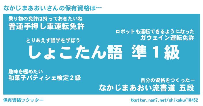 | 伝説のあだ名 | 『封印されし傭兵なかじまあおい』 |