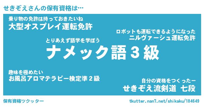 | 肩書あだ名 | 『せきぞえ店長』『せきぞえ大統領』 |