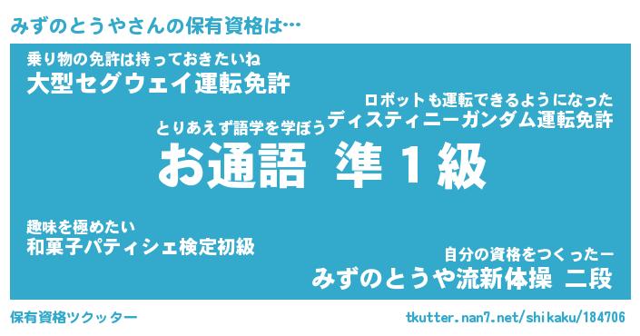 | 男性向けラノベタイトル風あだ名 | 『みずのとうやの憂鬱』 |