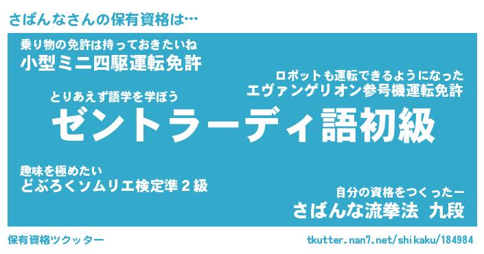 | ファンタジー風あだ名 | 『サバフェル』『エターナルサバンナー』 |
