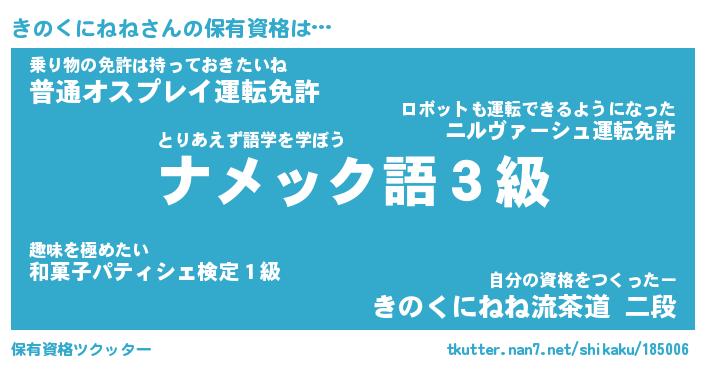 | 料理風あだ名 | 『節約★きのくにねねと油揚げの玉子丼』 |