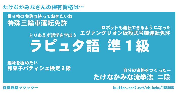 | ヒーロー風カッコイイあだ名 | 『スーパータケナカミナ』『黄金騎士タケ』 |