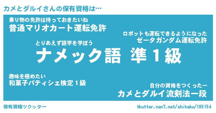 | ヘコむあだ名 | 『カメにゅー』『つくし』『カメお』 |