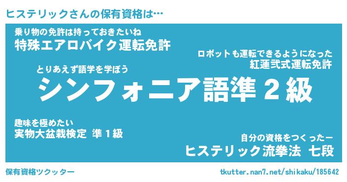 | ヒーロー風カッコイイあだ名 | 『スーパーヒステリック』『天弓騎士ヒス』 |