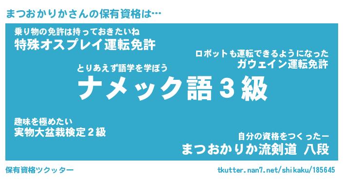 | ヒーロー風カッコイイあだ名 | 『スーパーマツオカリカ』『炎刃騎士マツ』 |