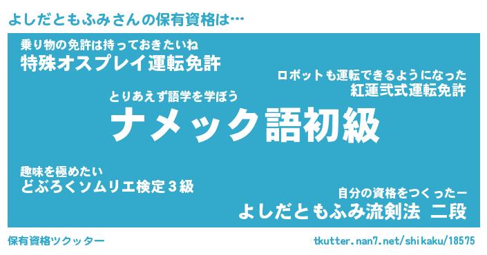 | 肩書あだ名 | 『よしだともふみ御曹司』 |