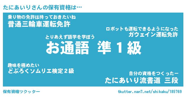 | ファンタジー風あだ名 | 『タニフェル』『エターナルタニアイリー』 |