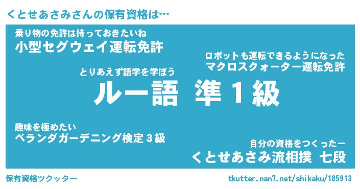 | 伝説のあだ名 | 『封印されし傭兵くとせあさみ』 |