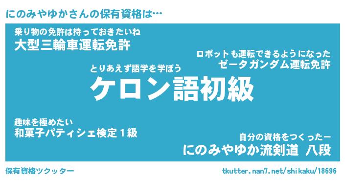 | 男性向けラノベタイトル風あだ名 | 『にのみやゆかの憂鬱』 |