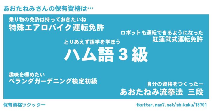 | ツイッター | あおたねみさんのツイッターID『katatsumuri_idle』 |