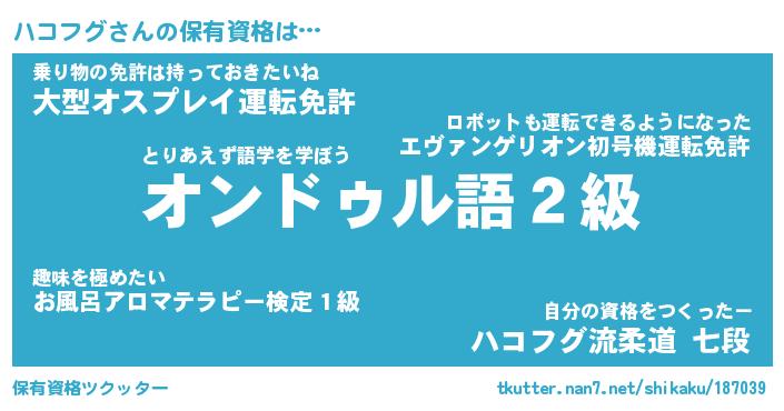 | ファンタジー風あだ名 | 『ハコフェル』『エターナルハコフグー』 |