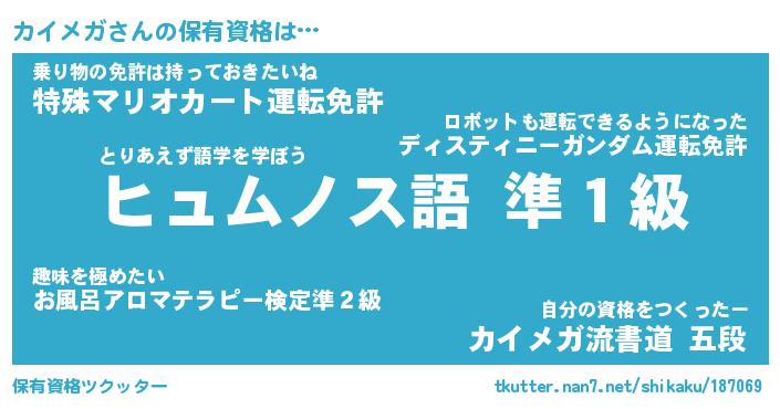| 意味不明あだ名 | 『ペロリンカイメガ』『永久保存カイメガ』 |