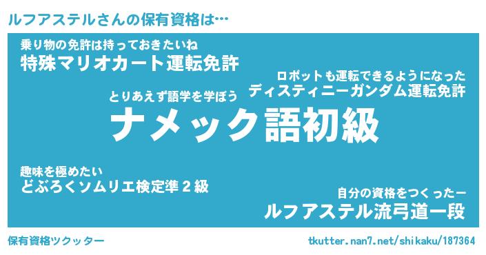 | ヒーロー風カッコイイあだ名 | 『スーパールフアステル』『暗黒騎士ルフ』 |
